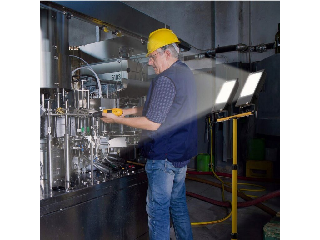 Profesionální 2x100W LED halogenový reflektor s celkovým výkonem 200W , vybavený 1,5m kabelem a krytím IP65. Ideální pro osvětlení stavenišť, dílen a montážních prací. Světelný tok 14 000 lm zaručuje intenzivní a rovnoměrné neutrální světlo s teplotou 4500K.