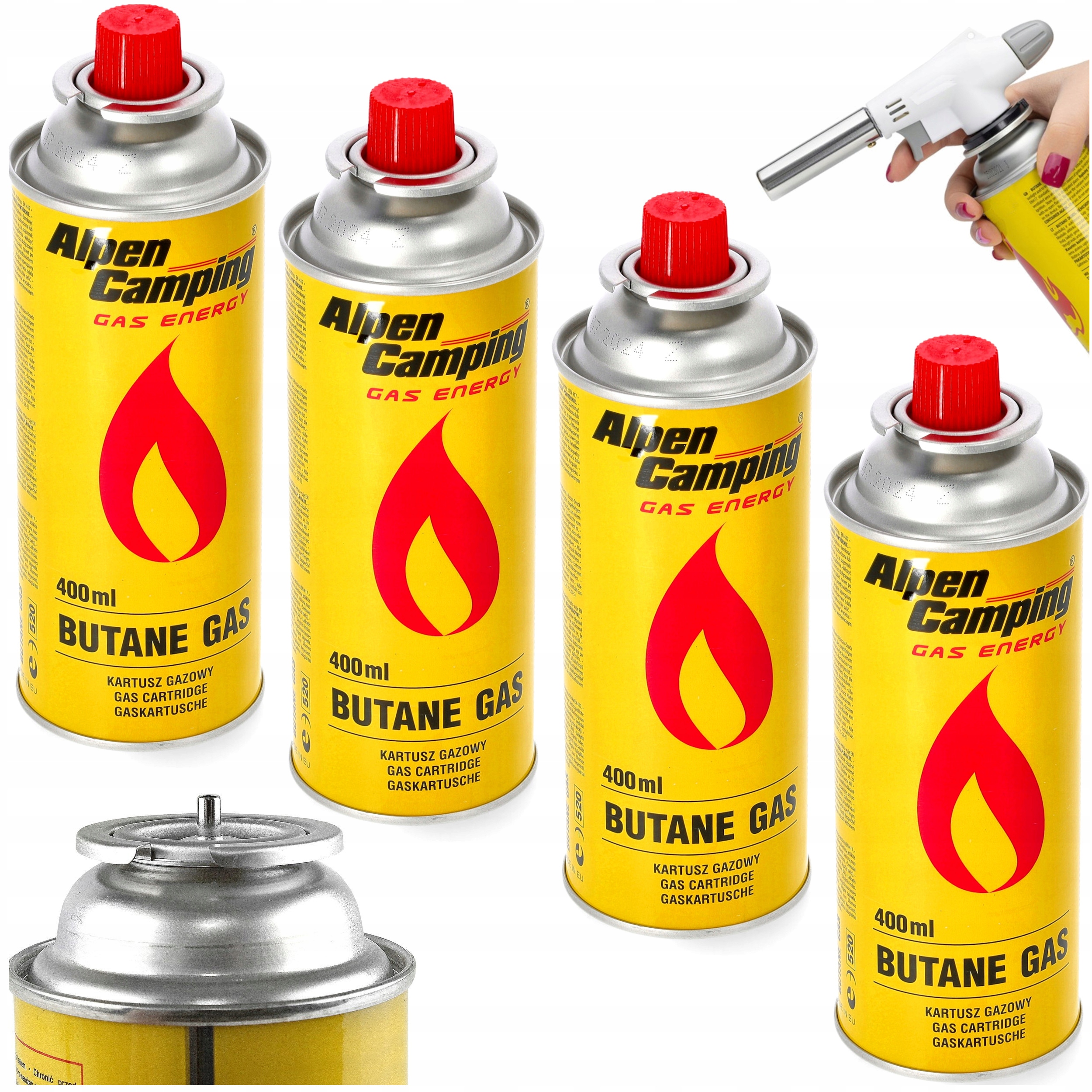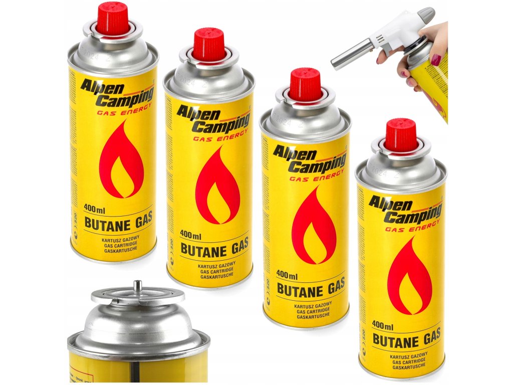 4× plynová kartuše – náplň do vařiče 400 ml, plynový hořák, opalovač