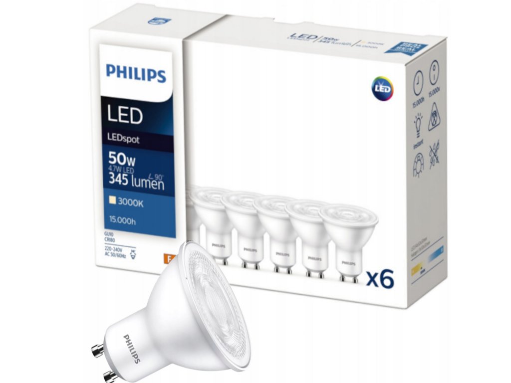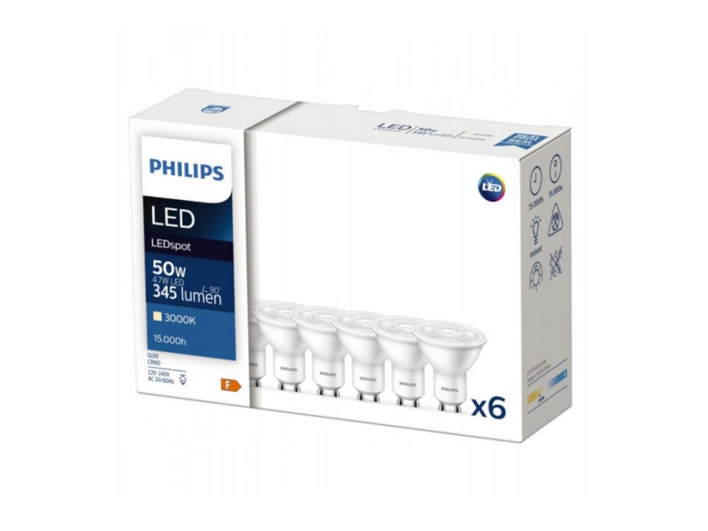 Sada 6 energeticky úsporných žárovek Philips CorePro LED GU10 4,7 W je perfektní náhradou za klasické 50W halogenové žárovky. Vyzařují teplé, příjemné světlo s teplotou 3000 K a zároveň zajišťují výrazné úspory energie a dlouhou životnost.