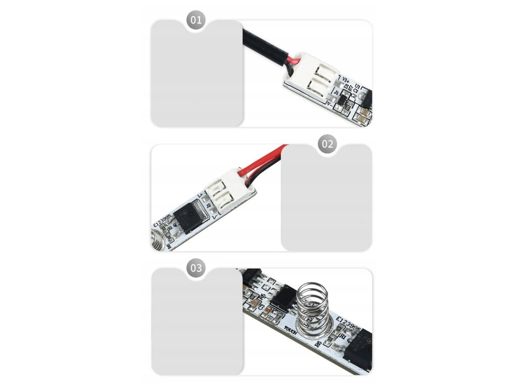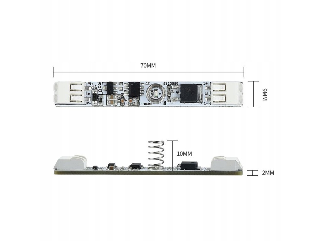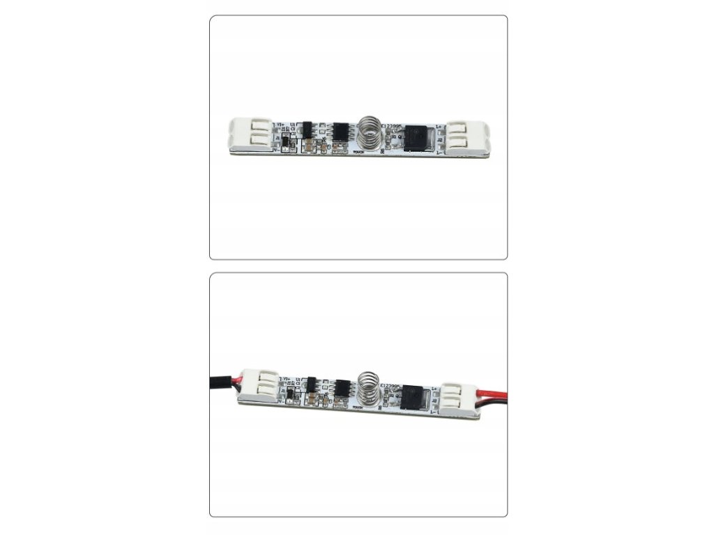 ✨ CENOVÝ HIT✨✔️ Hlavní vlastnosti produktu: ✅ Bezpájková montáž– Rychlá a bezproblémová instalace. Jednoduše zasuňte vodiče do zdířek – není potřeba žádné nářadí ani pájení. ✅ Funkce dotykového stmívání– Jednoduché ovládání osvětlení jedním dotykem. Krátkým stisknutím se světlo zapne nebo vypne, zatímco delším stisknutím se plynule upraví jas. ✅ Kompaktní design– malé rozměry (70 × 9 × 12 mm) umožňují instalaci přímo do LED profilů, přičemž je zachována estetika a minimalismus. ✅ Vysoký výkon– unese zatížení až72 W při 12 Va144 W při 24 V, což zajišťuje kompatibilitu s většinou LED pásků dostupných na trhu. ✅ Bezpečné použití– vhodné pro kabely s průřezem max.2 × 0,5 mm, což zaručuje stabilní a trvanlivé elektrické spojení. | |