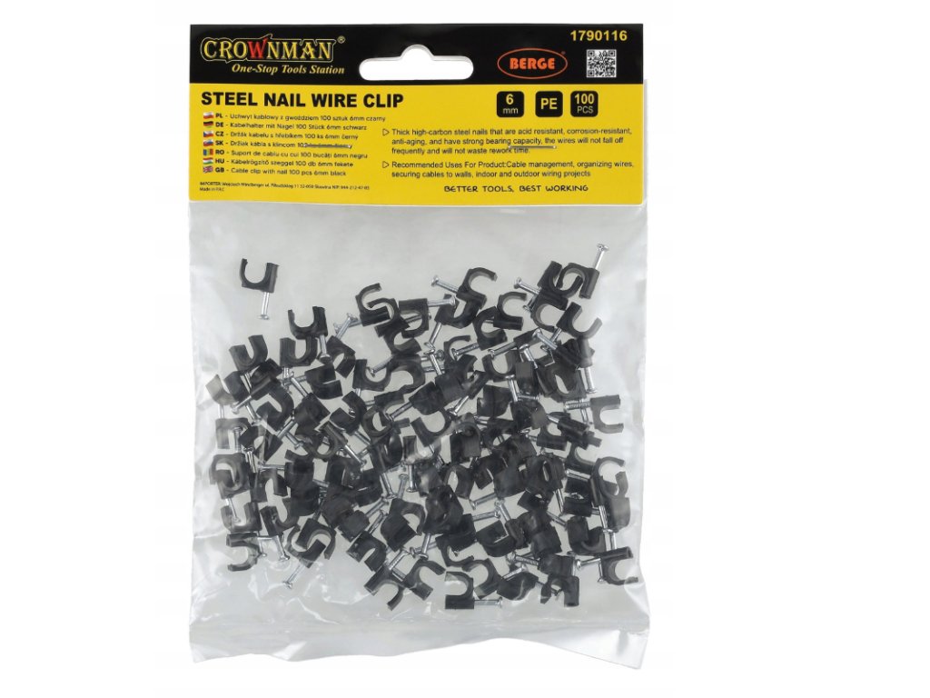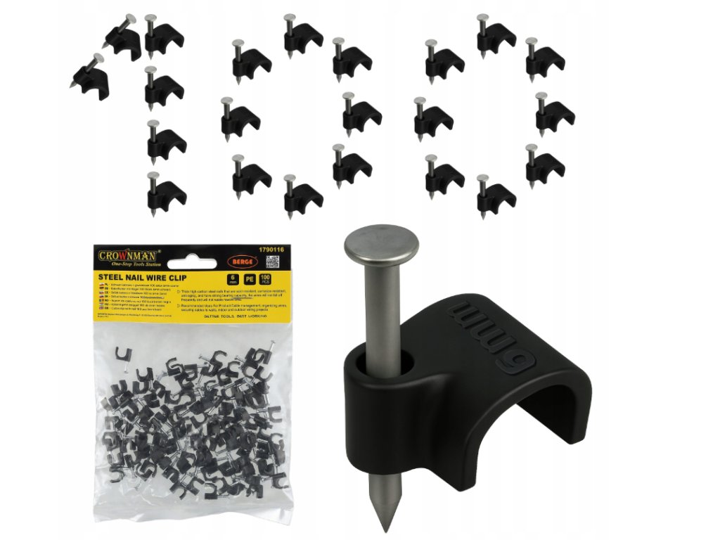 ❓ Často kladené otázky – Často kladené otázky1. Pro jaké kabely jsou držáky o průměru 6 mm určeny? Pro kabely o průměru přibližně 6 mm, včetně anténních, osvětlovacích, dekorativních a slaboproudých kabelů. 2. Jsou hřebíky odolné vůči korozi? Ano – jsou vyrobeny z korozivzdorné oceli s vysokým obsahem uhlíku. 3. Jsou vhodné pro lehké řetězce? Ano, verze 6 mm funguje velmi dobře pro instalaci kabelů pro LED girlandy. 4. Je montáž snadná? Ano – potřebujete jen kladivo a stabilní povrch, žádné další nářadí není potřeba. |