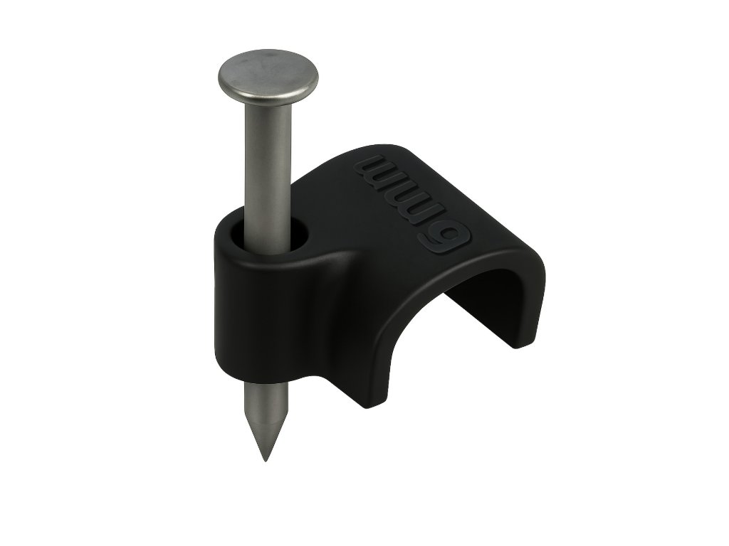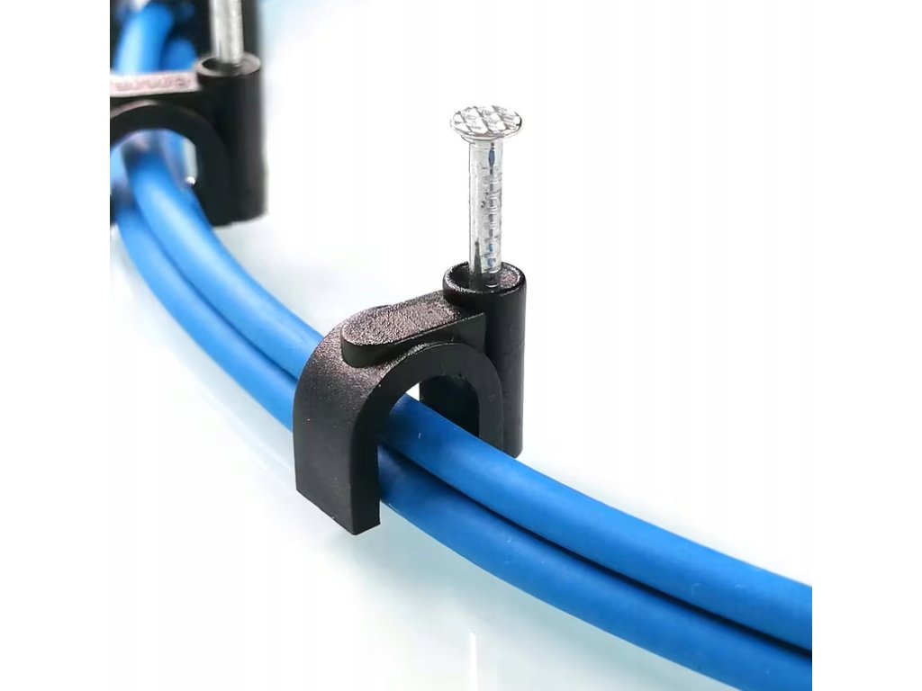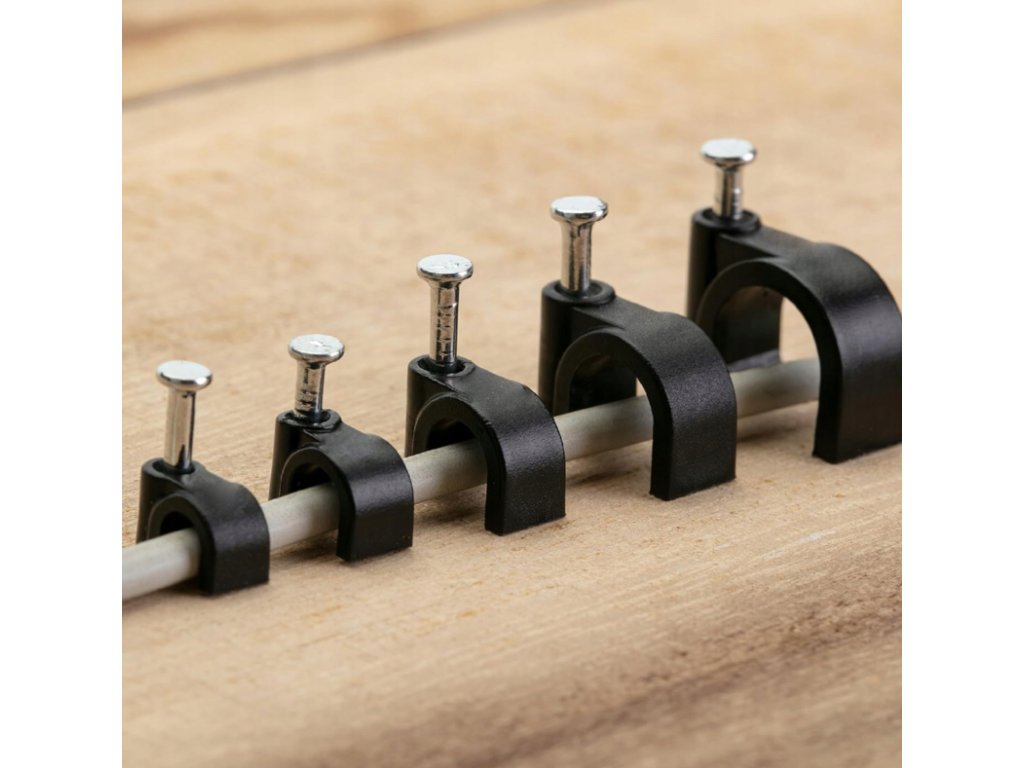 Držáky kabelů pro kabelové girlandy s 6mm hřebíky, 100 kusů, černé
