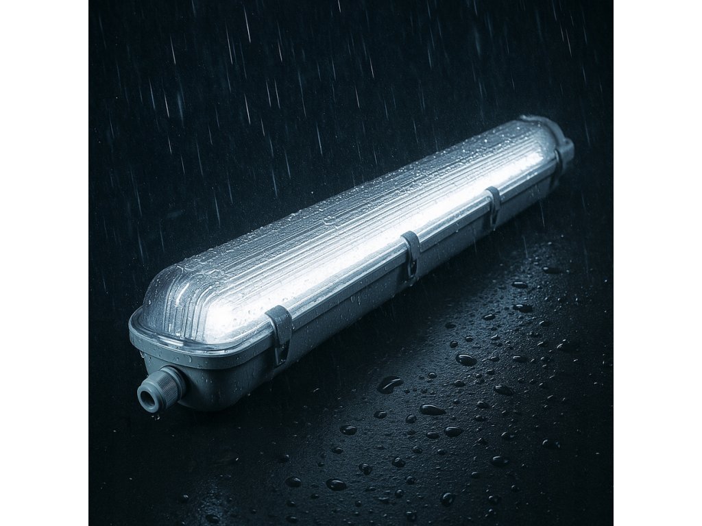 - Svítidlo má stupeň krytí IP65 , který poskytuje úplnou ochranu před prachem a stříkající vodou z jakéhokoli směru. Díky tomu je vodotěsné a prachotěsné , což umožňuje bezpečné použití ve vlhkých prostředích, jako jsou garáže, sklady a dílny.