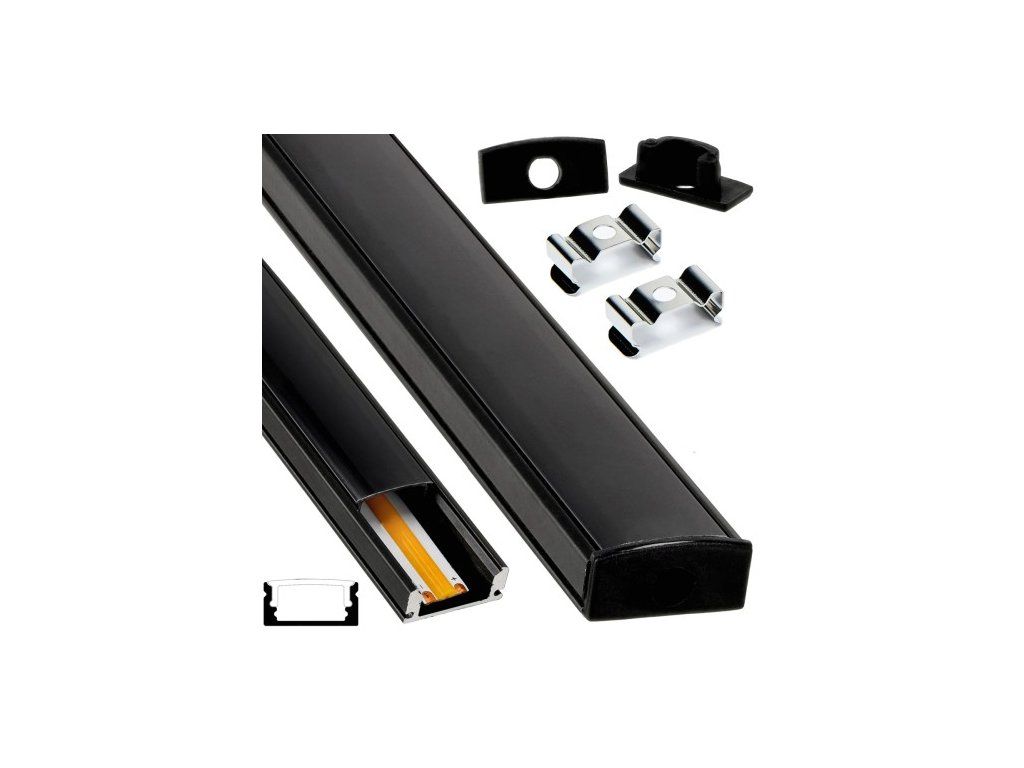 Hliníkový LED profil pro povrchově montovaný zapuštěný pásek, černý kryt, sada 2m