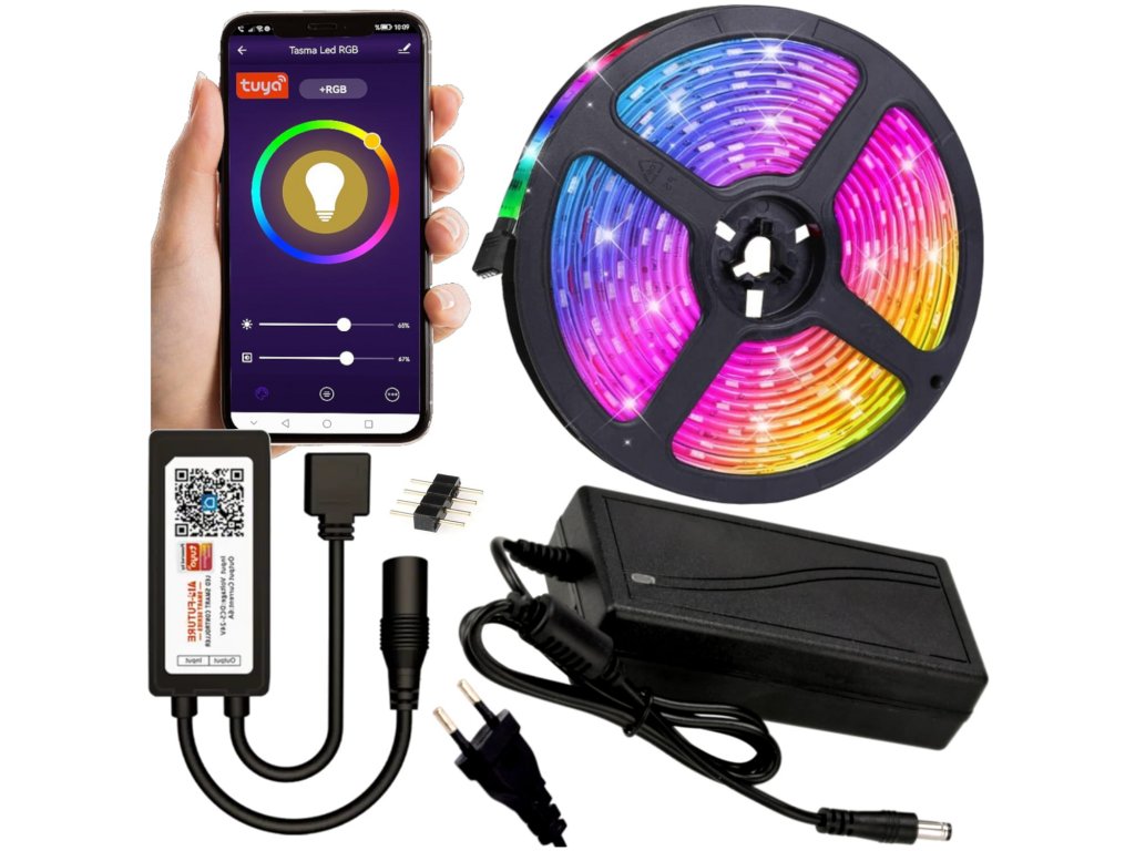 LED pásek RGB 5m + TUYA ovladač + zdroj