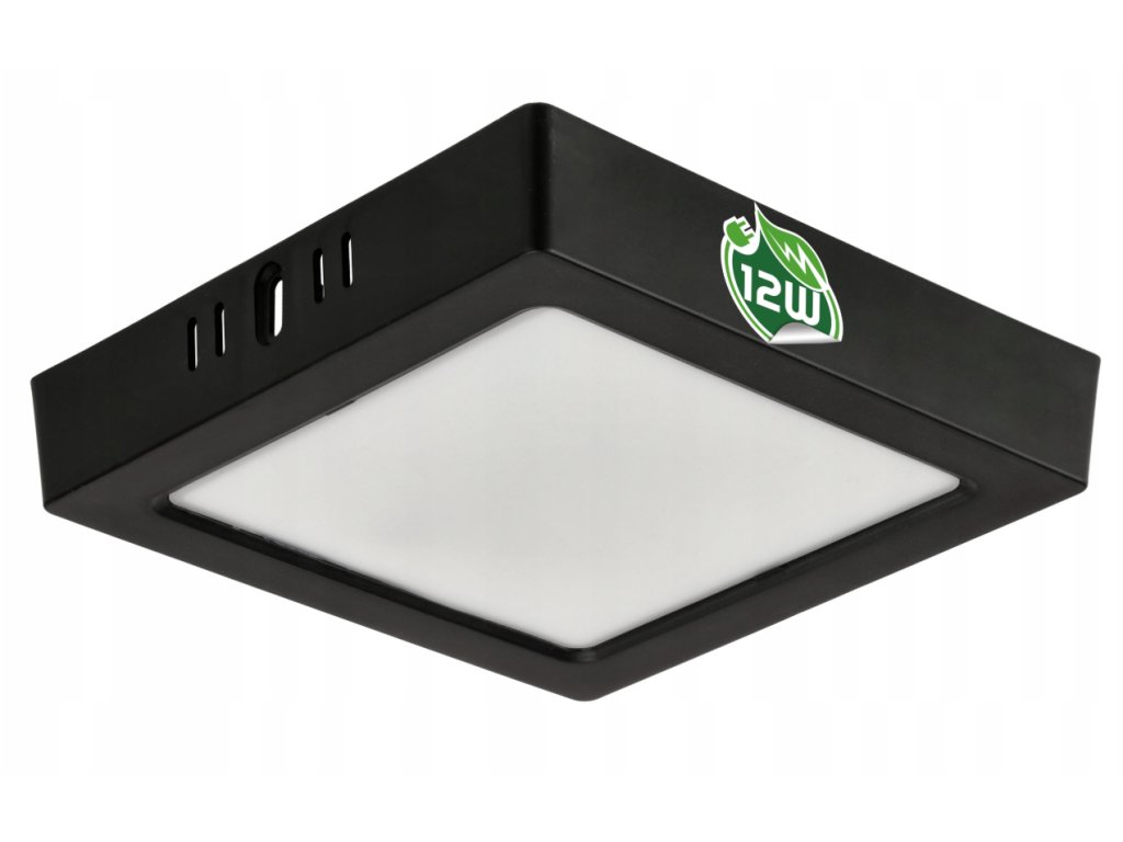 LED přisazený stropní panel – čtverec, 12 W, 1200 lm, černý