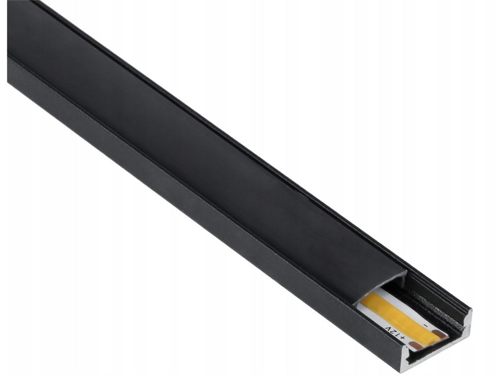 Černý hliníkový LED profil pro povrchovou montáž 2m s černým mléčným stínidlem a sadou 4 koncových krytek . Určeno pro estetickou a moderní instalaci LED pásků v obytných i komerčních prostorách.