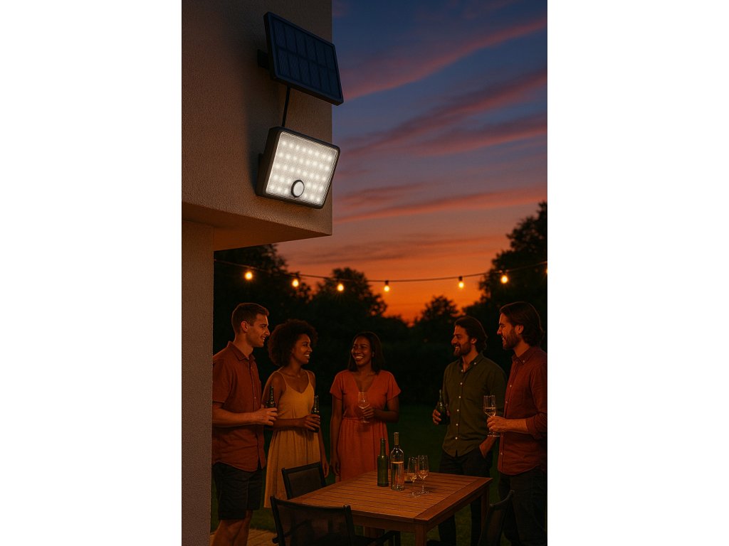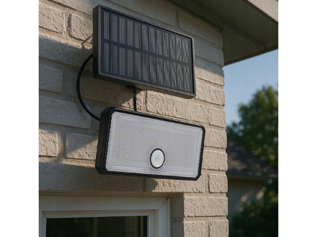 LED solární lampa s pohybovým a soumrakovým senzorem je funkční venkovní osvětlení se solárním panelem a až třemi provozními režimy.