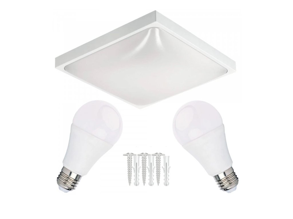LED stropní svítidlo 2xE27 čtvercové bílé + 2x E27 10W neutrální bílá žárovka