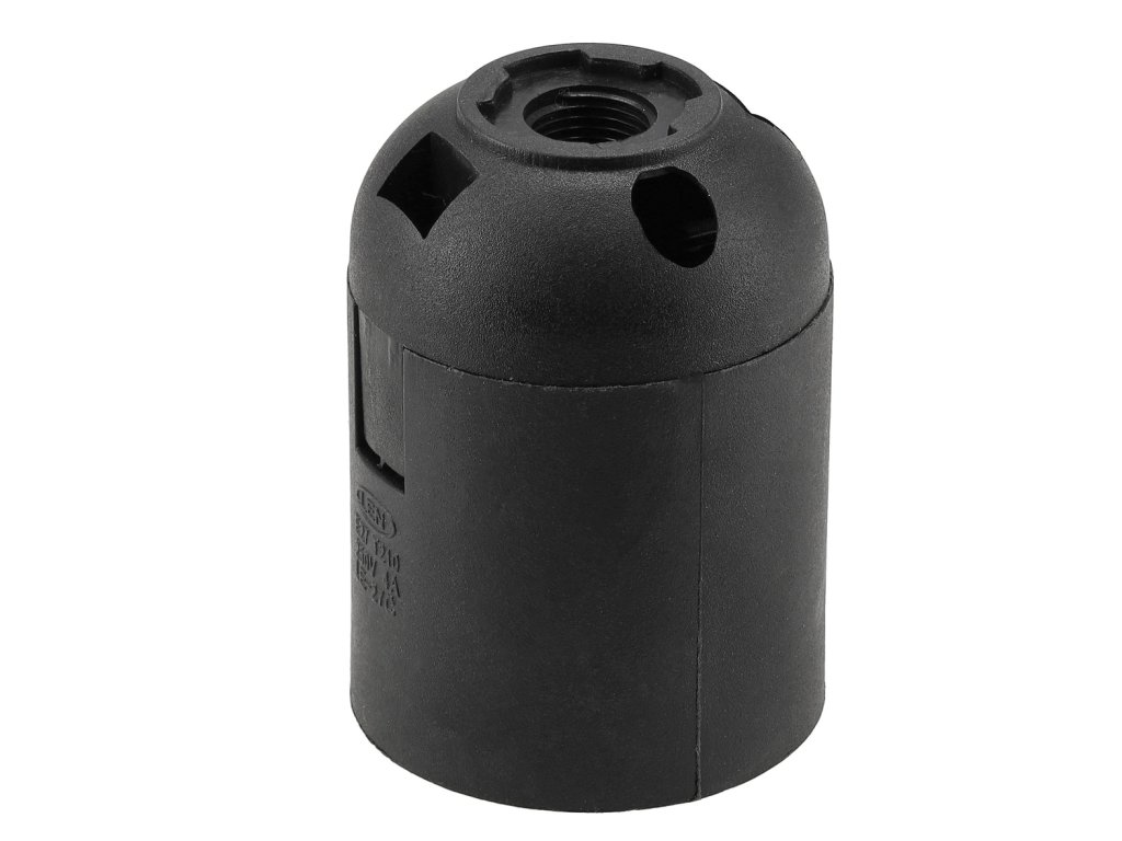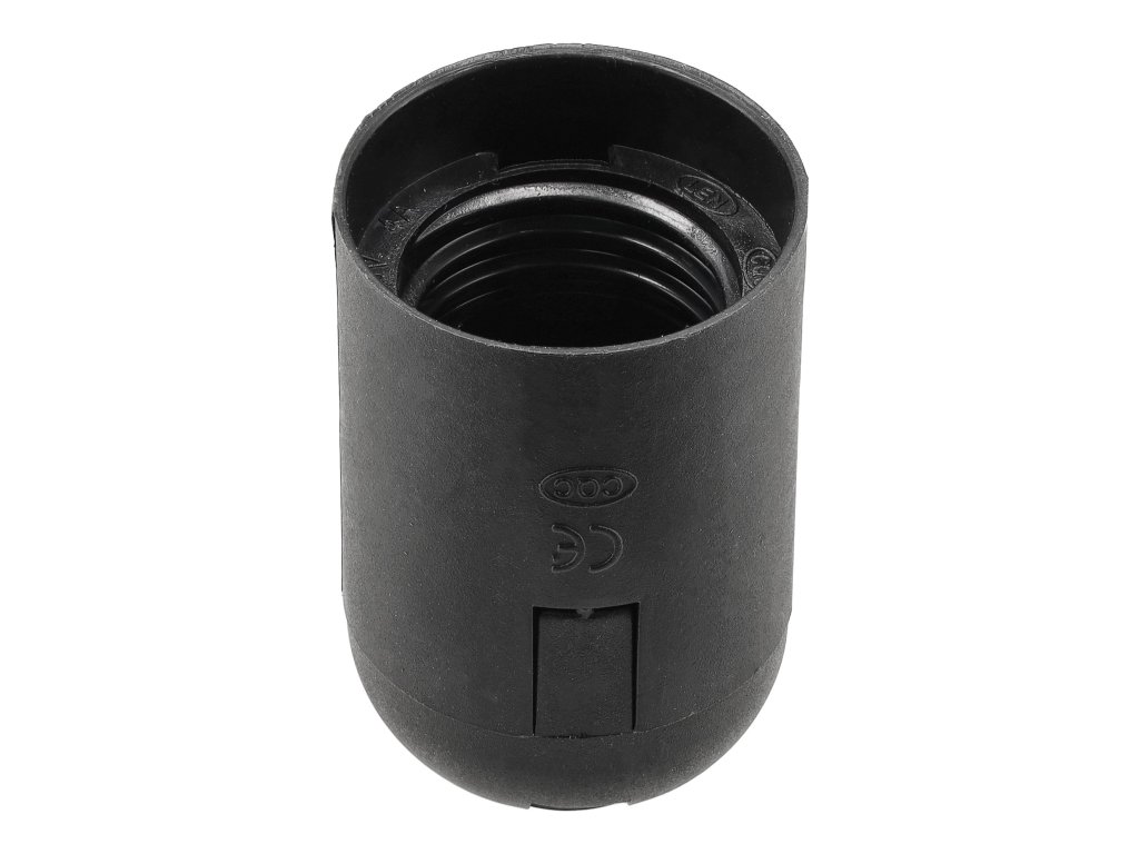 Objímka E27 z plastu se závitem, černá, hladká, patice E27