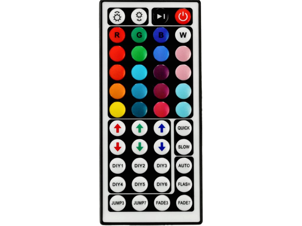 ✔️ Funkce dálkového ovládání IR44 – plná kontrola nad RGB LED osvětlením:Dálkový ovladač IR44 je intuitivní a multifunkční zařízení, které umožňuje přesné ovládání světelných efektů RGB LED pásků:
