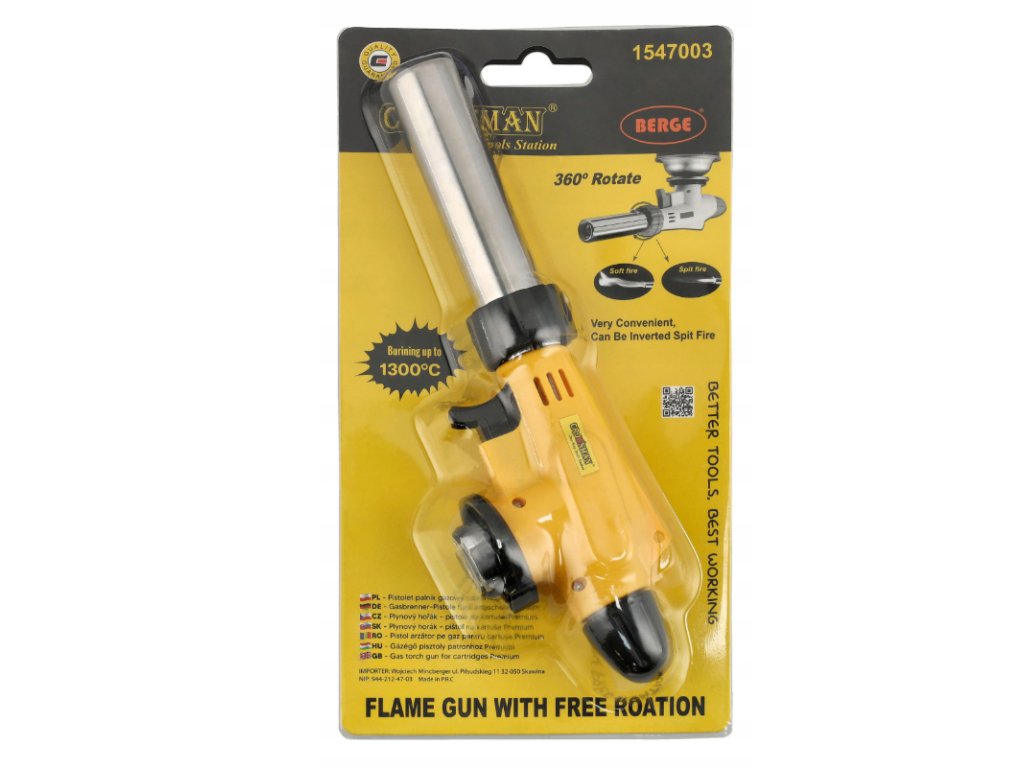 ✅ Technické údaje – plynový hořákTeplota plamene: až 1300 °C Regulace plamene: dvojitá Otáčení hlavy: 360° Zapalování: piezoelektrické Materiál jádra: měď Práce v jakékoli poloze: ano | |