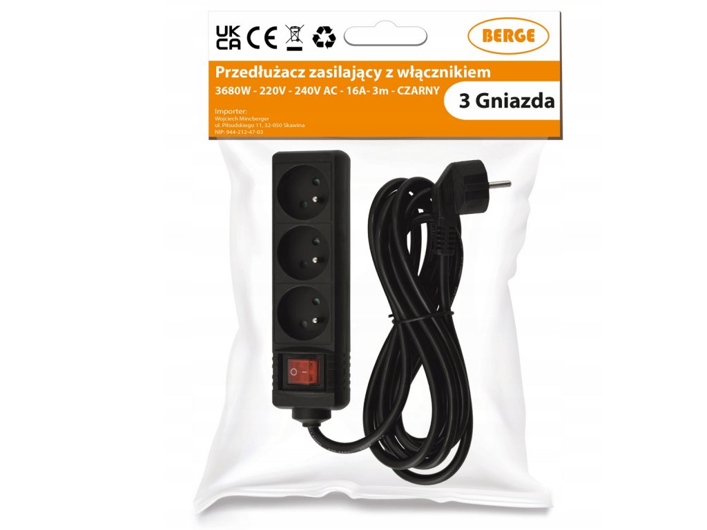 - Model: Prodlužovací kabel 3 zásuvky 3 m