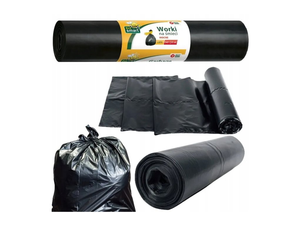 Worki na Śmieci 240l 10 sztuk MOCNE SmartBee Czarne Worek Duże Solidne Marka Bee Smart