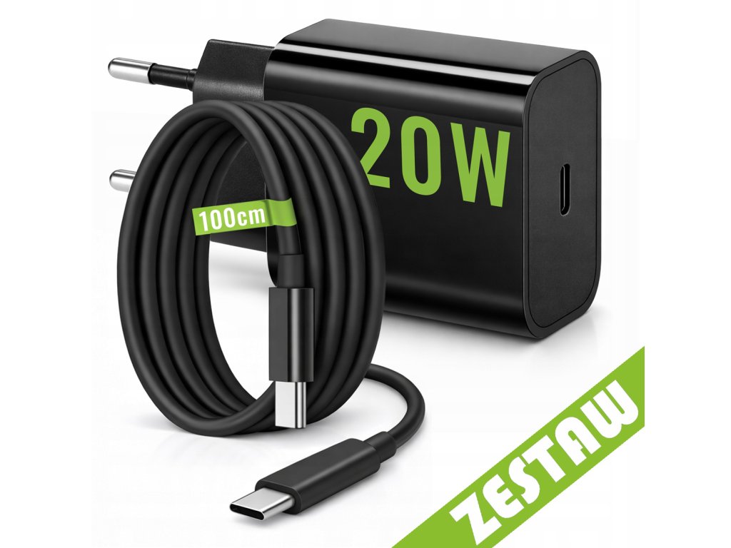 Rychlá síťová nabíječka 20 W + USB-C kabel 100 cm (1 m), napájecí adaptér