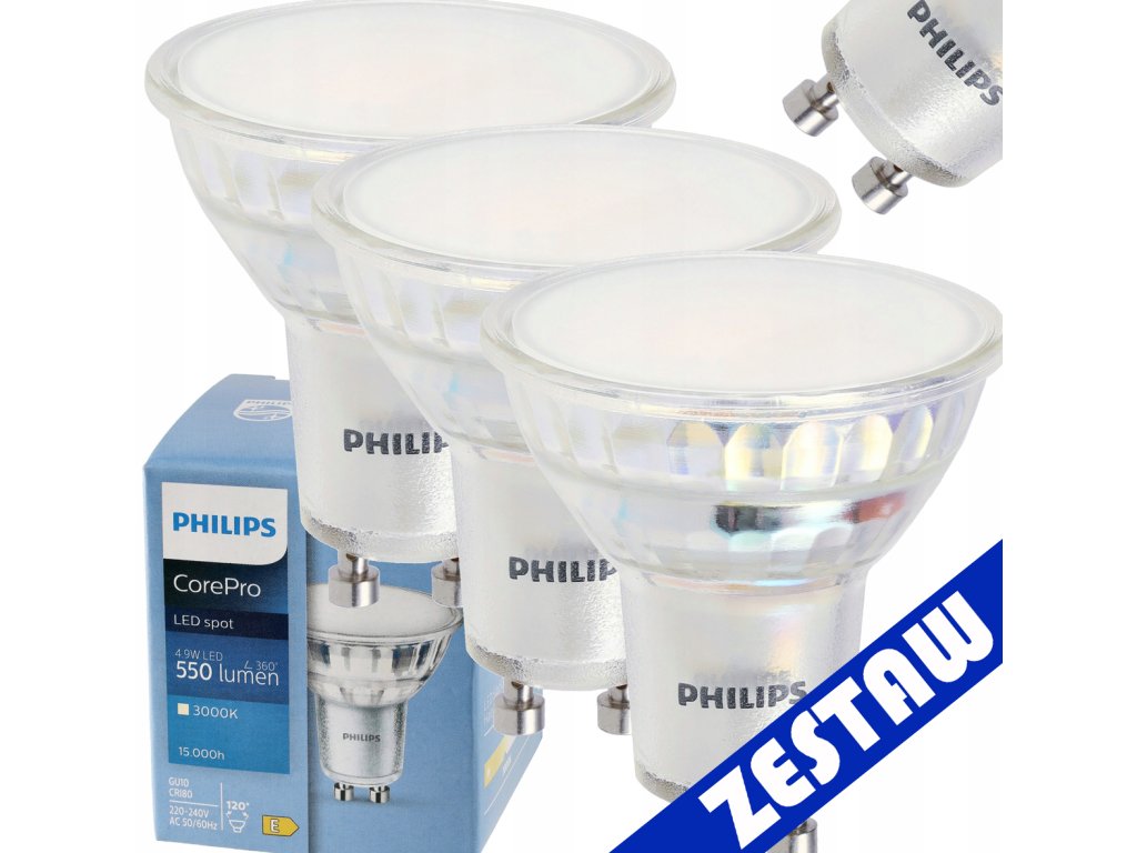 SADA 3x žárovka Philips GU10 4,9W 550lm 112lm/W 3000K EyeComfort CorePro