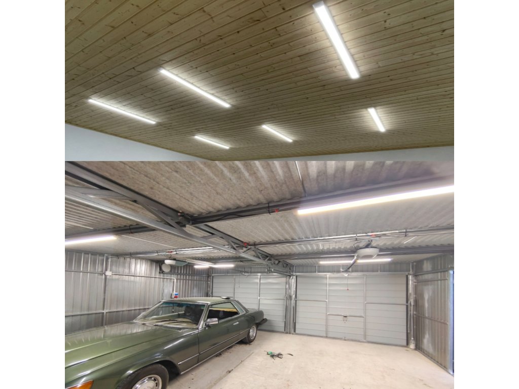 Sada 4 x povrchově montovaných LED svítidel 36W 120cm zářivkový panel pro garáž a dílnu