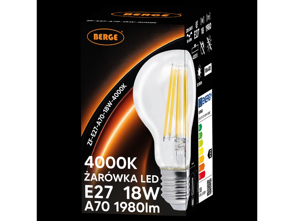Żarówka LED E27 18W = 150W 1980lm 4000K Neutralna Filament A70 Zestaw 6x Kod producenta Żarówka LED E27 Ozdobna 18W 1980lm