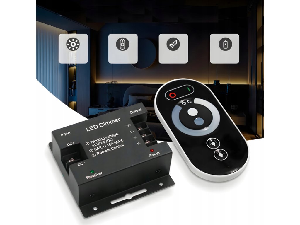 ✔️ Technické údaje ovladačeTyp:MONO LED stmívač/ovladač Model:18A 216W Napájecí napětí:12V DC / 24V DC Maximální zatěžovací výkon: 216 W při 12 V (nižší proud při 24 V – vyšší účinnost instalace) Rozsah nastavení:1–100 % Řízení:2,4 GHz RF dotykové dálkové ovládání Dosah dálkového ovládání:až 20 m Paměť nastavení:ano Napájení dálkového ovladače:3 x AAA baterie (nejsou součástí balení) | |