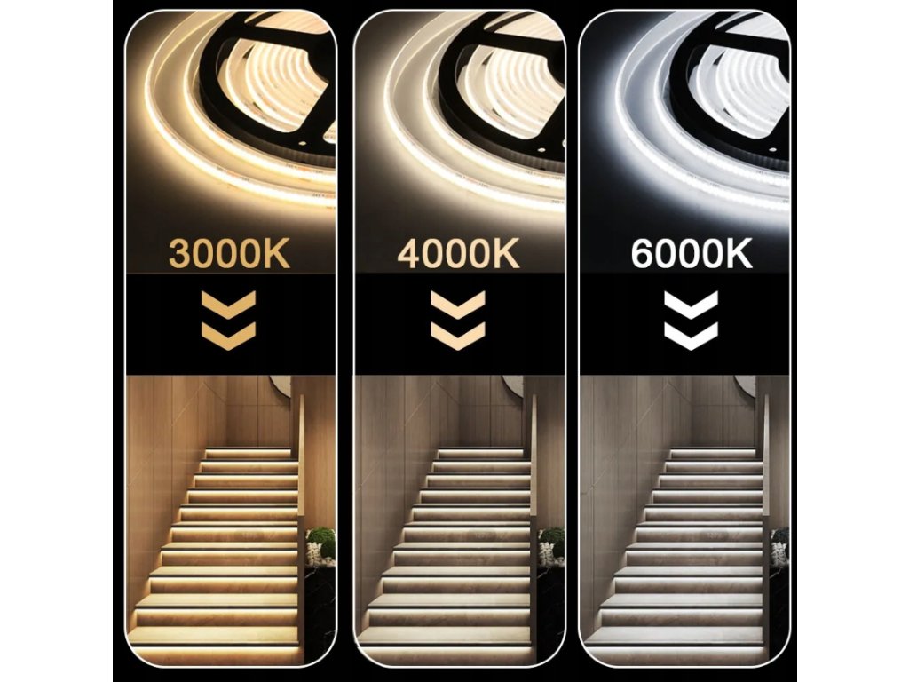 ✔️ Proč je COB lepší?COB páska používá velmi hustě rozmístěné diody umístěné pod jednotnou vrstvou fosforu, díky čemužcelý pásek se rovnoměrně rozsvítíV praxi to znamenáestetičtější osvětlení, žádný bodový efekt a mnohem lepší vzhled ve srovnání s klasickými SMD páskami. | |