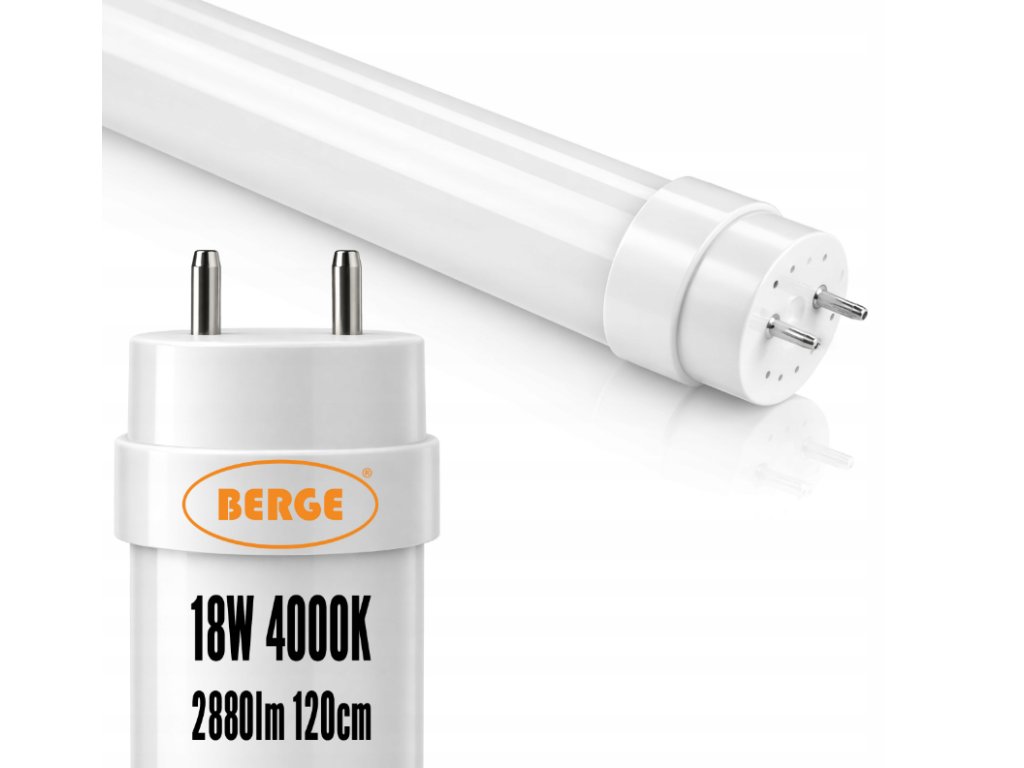 Dane techniczneTyp: Tuba LED T8 G13 Długość: 120 cm Moc: 18 W Zamiennik: tradycyjna świetlówka fluorescencyjna Strumień świetlny: 2880 lm Skuteczność świetlna: 160 lm/W Barwa światła: 4000K – neutralna biała Kąt świecenia: 220° Klosz: mleczny Trzonek: G13 (T8) Zasilanie: jednostronne (L/N z jednej strony) Napięcie pracy: 220–240V AC CRI: ≥80 Trwałość: 30 000 h Klasa energetyczna: C ⭐W zestawie 2 sztuki! |
