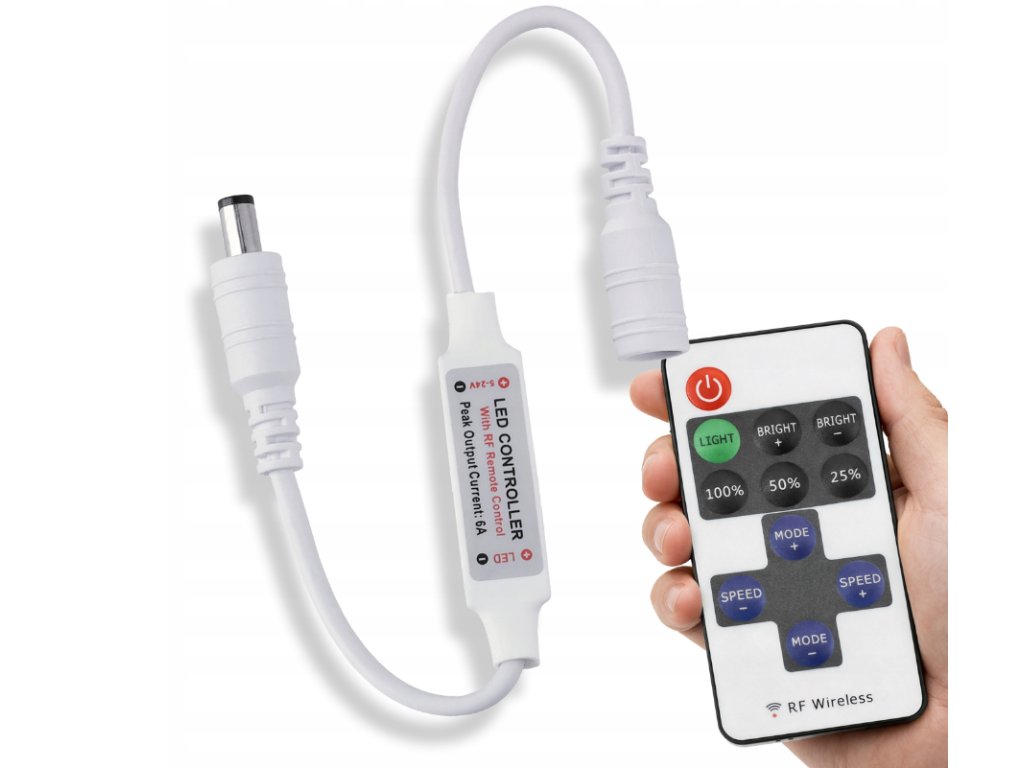 ⭐ Specifikace ovladače:Typ: LED ovladač/stmívačMONO Ovládání:RF – rádiové dálkové ovládání Počet tlačítek na dálkovém ovladači:11 Napájecí napětí:DC 5–24 V Výstupní napětí:12–24 V stejnosměrného proudu Maximální výstupní proud:6A Maximální výkon: 72 W při 12 V 144 W při 24 V Stupeň těsnosti:IP20 Baterie součástí balení:Ano | |