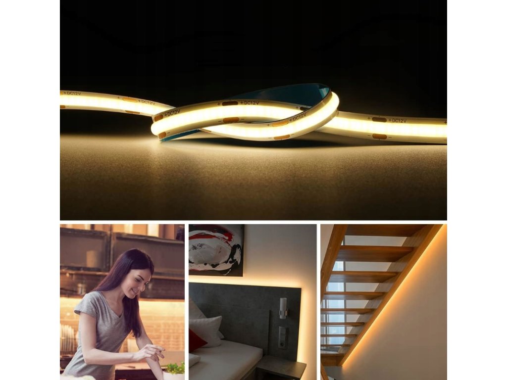 ❓ Často kladené otázky – Často kladené otázky1. Lze pásku ztlumit? Ano, sada obsahuje manuální stmívač LED, který umožňuje plynulé nastavení jasu. 2. Svítí páska místy? Ne. Technologie COB poskytuje rovnoměrný, nepřetržitý světelný paprsek. 3. Je sada připravena k použití? Ano. Jednoduše připojte pásek ke stmívači a poté k napájení. 4. Mohu zkrátit LED pásek? Ano, pásku lze rozdělit na určených místech (přibližně každých 3,5 cm). 5. Je sada vhodná pro venkovní použití? Ne. Součásti mají stupeň krytí IP20 a jsou určeny pro vnitřní použití. | |