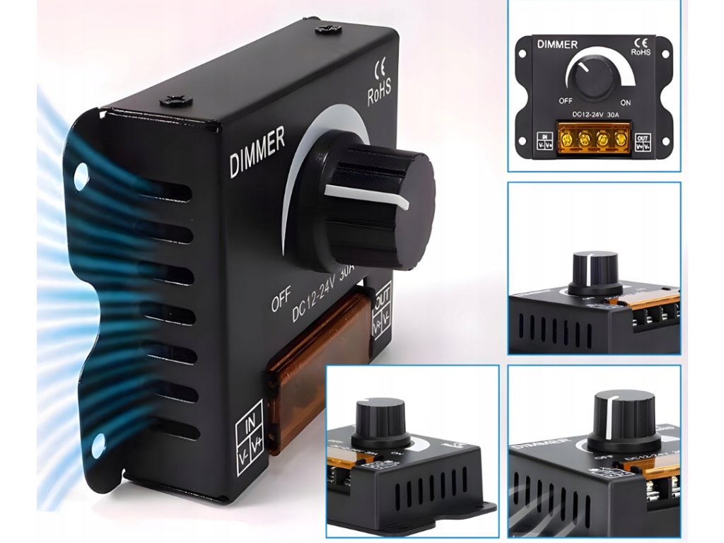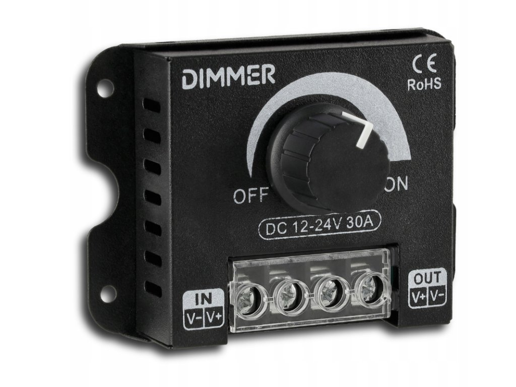 ⭐ Specifikace ovladače LED:Typ zařízení: manuální stmívač LED Vstupní napětí:DC 12–24 V Maximální proud:30A Výstupní výkon:360 W (12 V) / 720 W (24 V) Rozsah stmívání:0–100 % (kapalina) Ovládání:PWM (modulace šířky impulsů) Podporované pásky:jednobarevná LED Materiál pouzdra:kov Rozměry:84 × 62 × 20 mm Provozní teplota:-20 °C až +60 °C Stupeň ochrany:IP20(pro interní použití) Instalace: kabelová, šroubové svorky | |