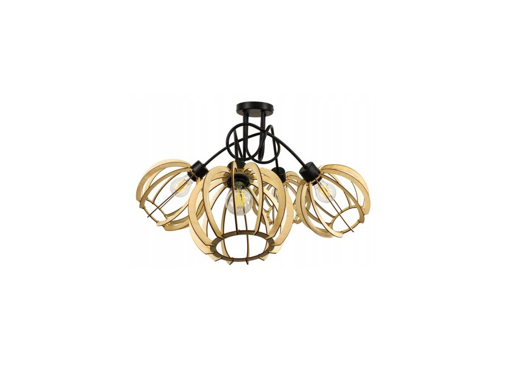 Stropní závěsné svítidlo LOFT 4x velká dřevěná koule